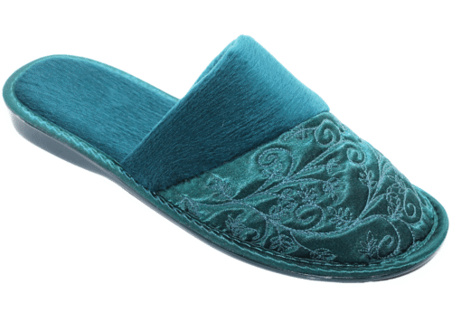 Step into a world of refined comfort with our Ladies Embroidered Asymmetric Slipper. Designed for the woman who appreciates fine detail, these slippers feature an exquisite floral-inspired embroidery that sweeps across the upper in a modern, asymmetric silhouette. The rich teal satin-like finish adds a touch of opulence to your loungewear, making even a quiet evening at home feel like a special occasion.Bulk discount applies.Made with love by us in South Africa.