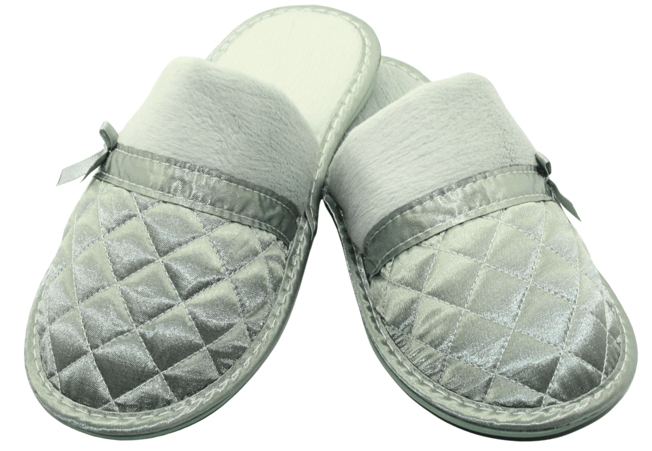 Simply slip little feet into these stylish and soft girls’ teal satin quilted mule slippers for the utmost comfort.