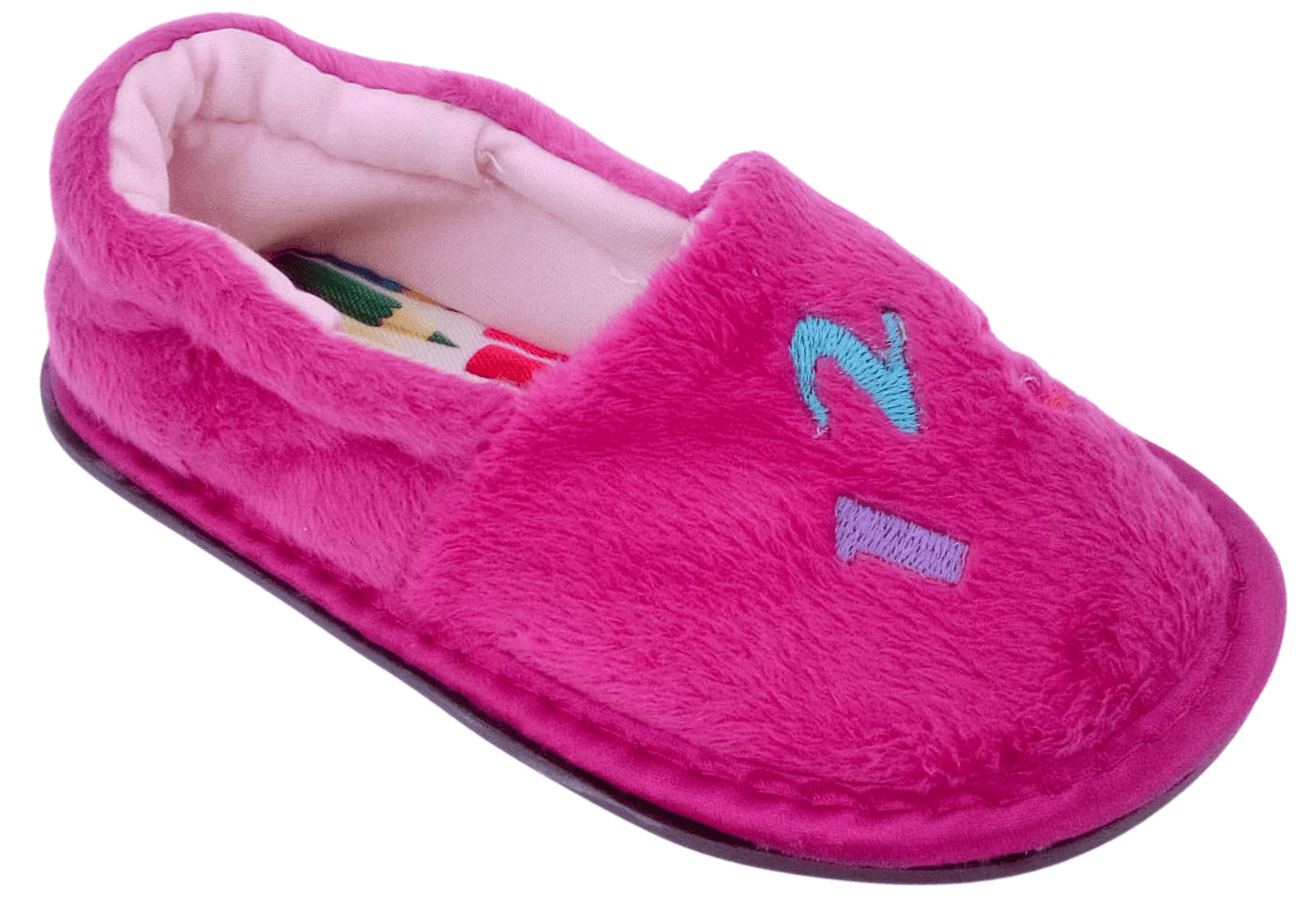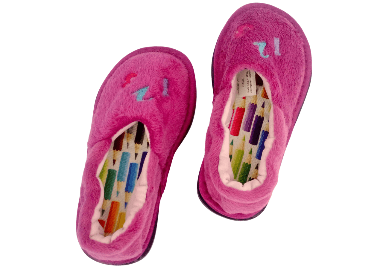 Cozy meets creative in these vibrant pink “stokie” slippers.