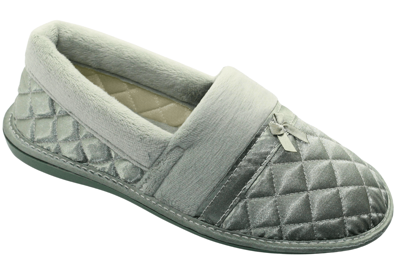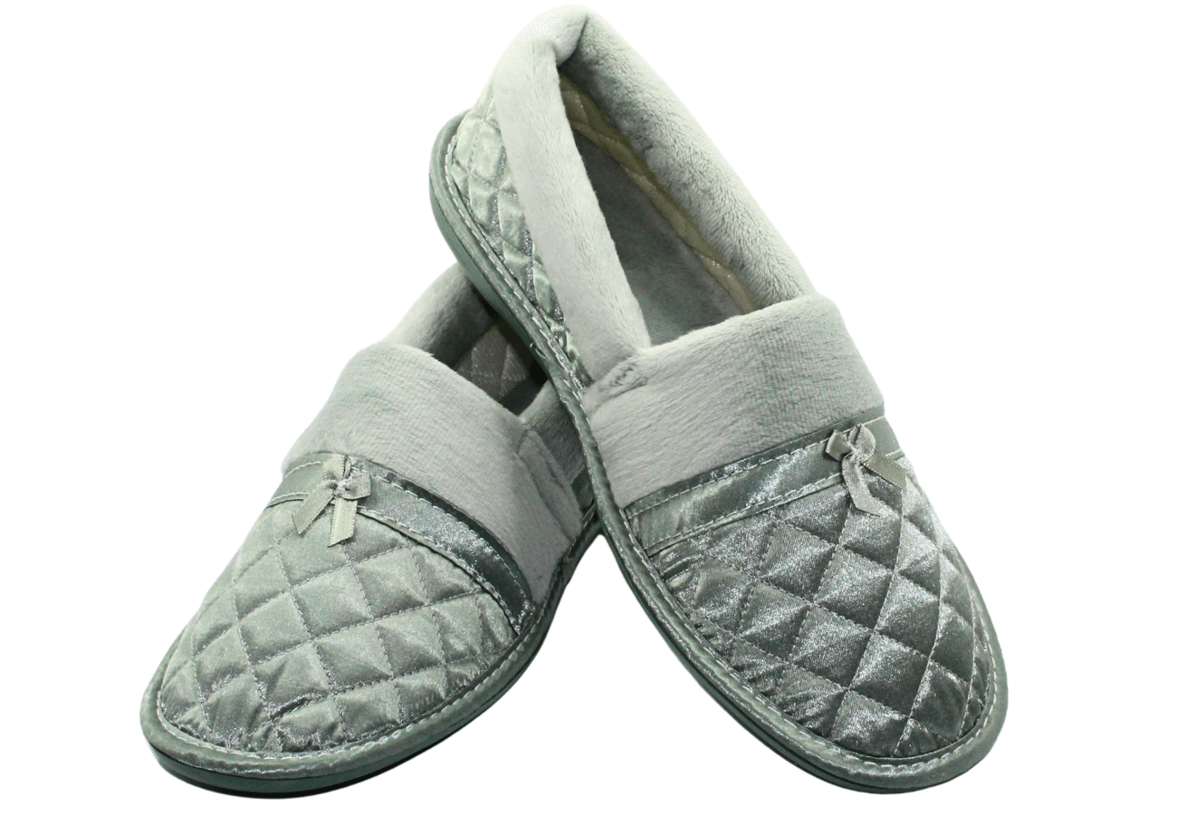 Embrace soft comfort for indoors and outdoors with our satin quilted closed back slippers designed with padded insole for extra support.