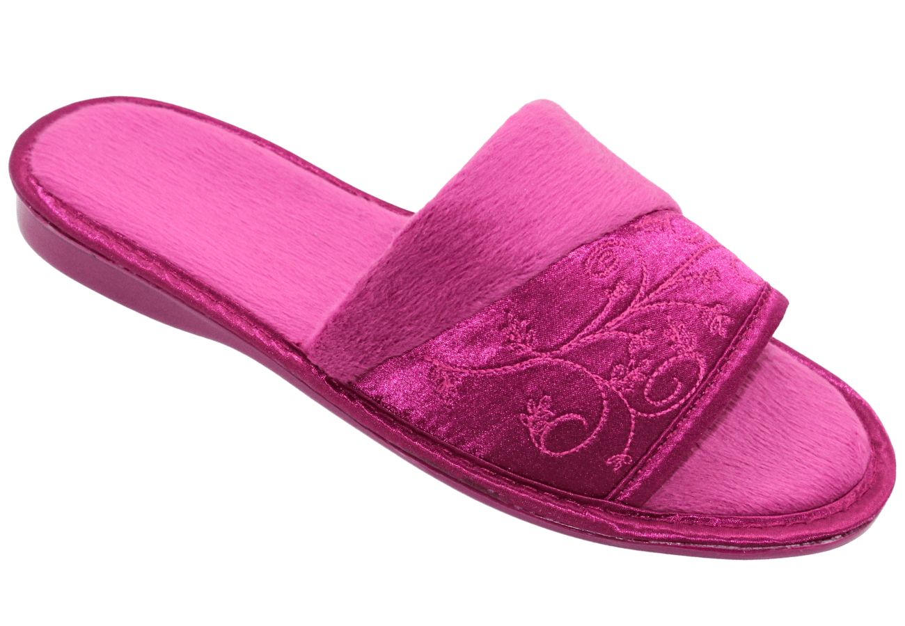 Experience the perfect balance of luxury and airiness with our Ladies Open Toe Embroidered Slipper. Featuring a shimmering, satin-finish upper, these slippers are adorned with delicate, tone-on-tone embroidery that adds a sophisticated touch to your loungewear. The open-toe design makes them an ideal choice for transitional seasons, keeping your feet cool while maintaining an elegant appearance.