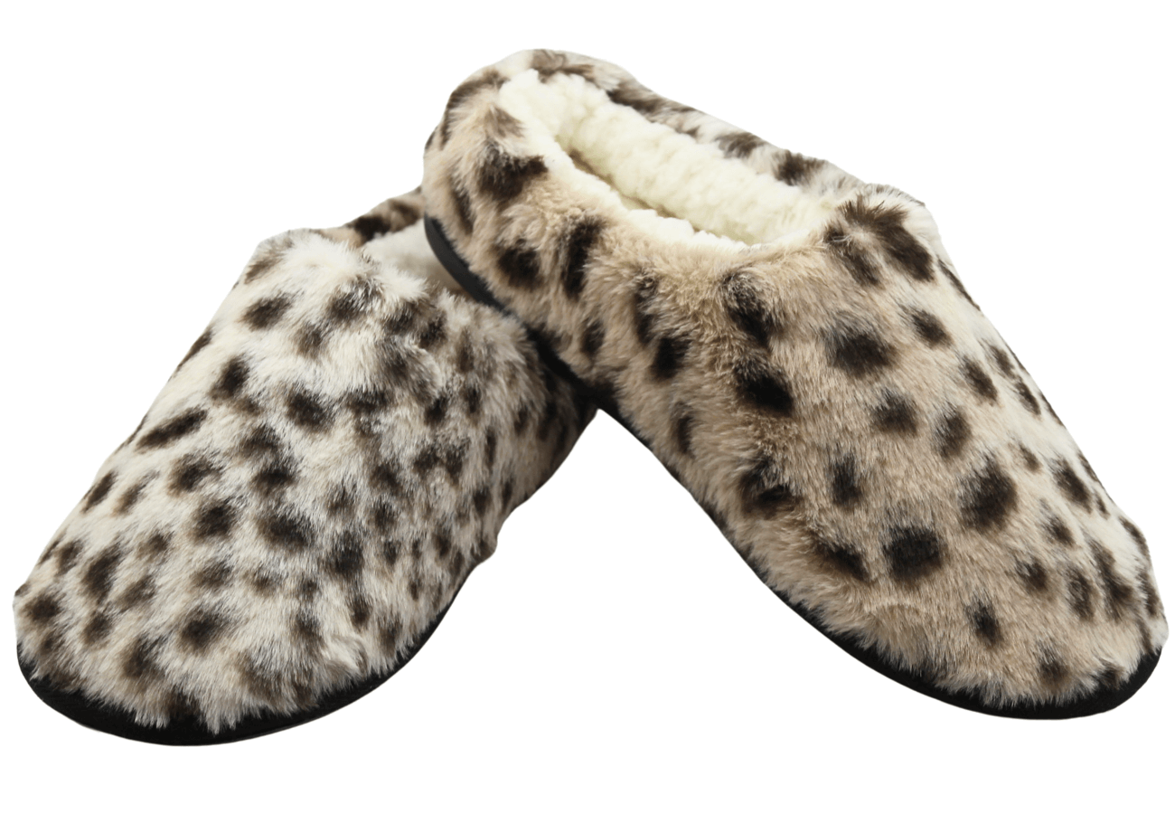 These chic leopard print slippers feature a secure closed-back design and a plush, super-soft faux fur lining for ultimate warmth. Complete with a fashionable animal pattern and a durable, anti-slip sole, they are the perfect blend of style and comfort for lounging.